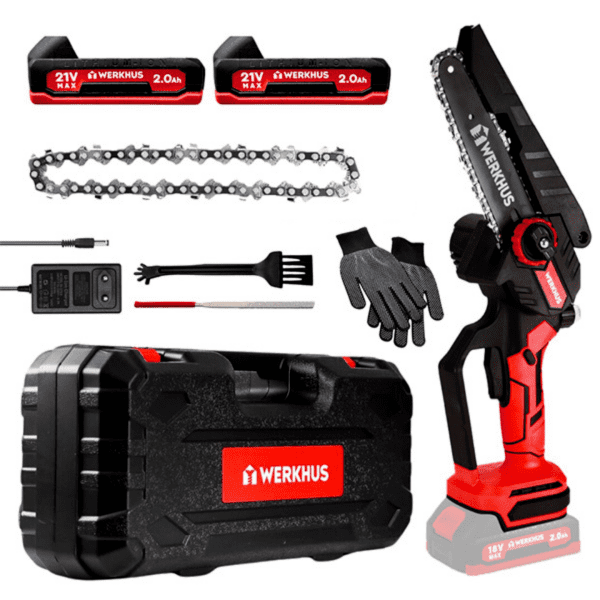Pārdošanas komplektā ietilpst grāmata un šādi Werkhus cordless chainsaw MAXX